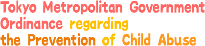 Article 1 This ordinance seeks to contribute to healthy environments for Children’s growth and the protection of Children’s rights and interests, through promoting and maintaining such environments by establishing the basics for policies that will protect Children from Abuse, based on the obligations of local public bodies stipulated in Article 4 Section 1 through Section 5 of the Child Abuse Prevention Law (2000 Law No. 82, hereafter referred to as “Law”), as well as defining the basic principles of protecting Children from Abuse and making clear the responsibilities of Tokyo Metropolitan Government (hereafter, Tokyo), Tokyo residents, Guardians, and Related Organizations.